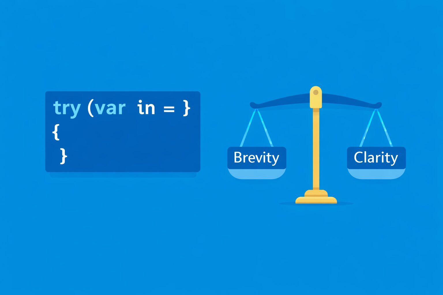 まず、try-with-resourcesでもvarが使えるため、I/O周りの長い型名を省略できます。しかし、リソースの型は例外の種類や利用可能なメソッドに直結します。したがって、右辺のnewで型が明確か、リソース型が設計上の意味を持つか、という観点で判断すると安全です。