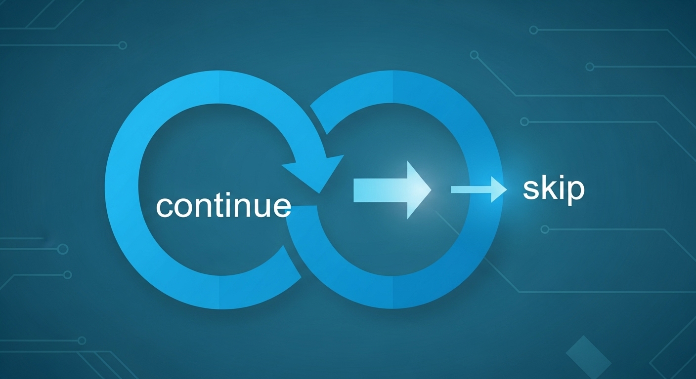 まず、continue 文の役割を一言で表すと、「現在の周(イテレーション)の残りの処理を無視して、即座に次のループへ進む」ための命令です。