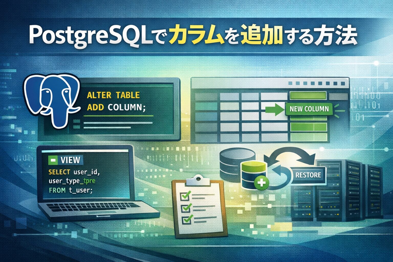 PostgreSQLでカラムを追加する方法|位置指定できない理由と安全な回避策を解説
